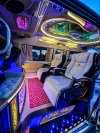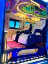 ภายในรถตู้ตกแต่งหรูหรา ภายในกว้างขวาง เบาะกว้างมีดันน่อง นั่งสบาย แอร์ไมโครบัสเย็นฉ่ำ มีเคาน์เตอร์เครื่องดื่ม เครื่องเสียง TV วิดีโอ
